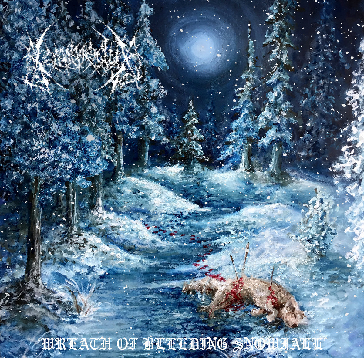 Ripped by yellowed teeth, blood pooled in icy sleet